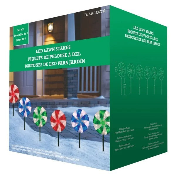 10” Peppermint LED Lawn Stakes with 180 total LEDs, Set of 6