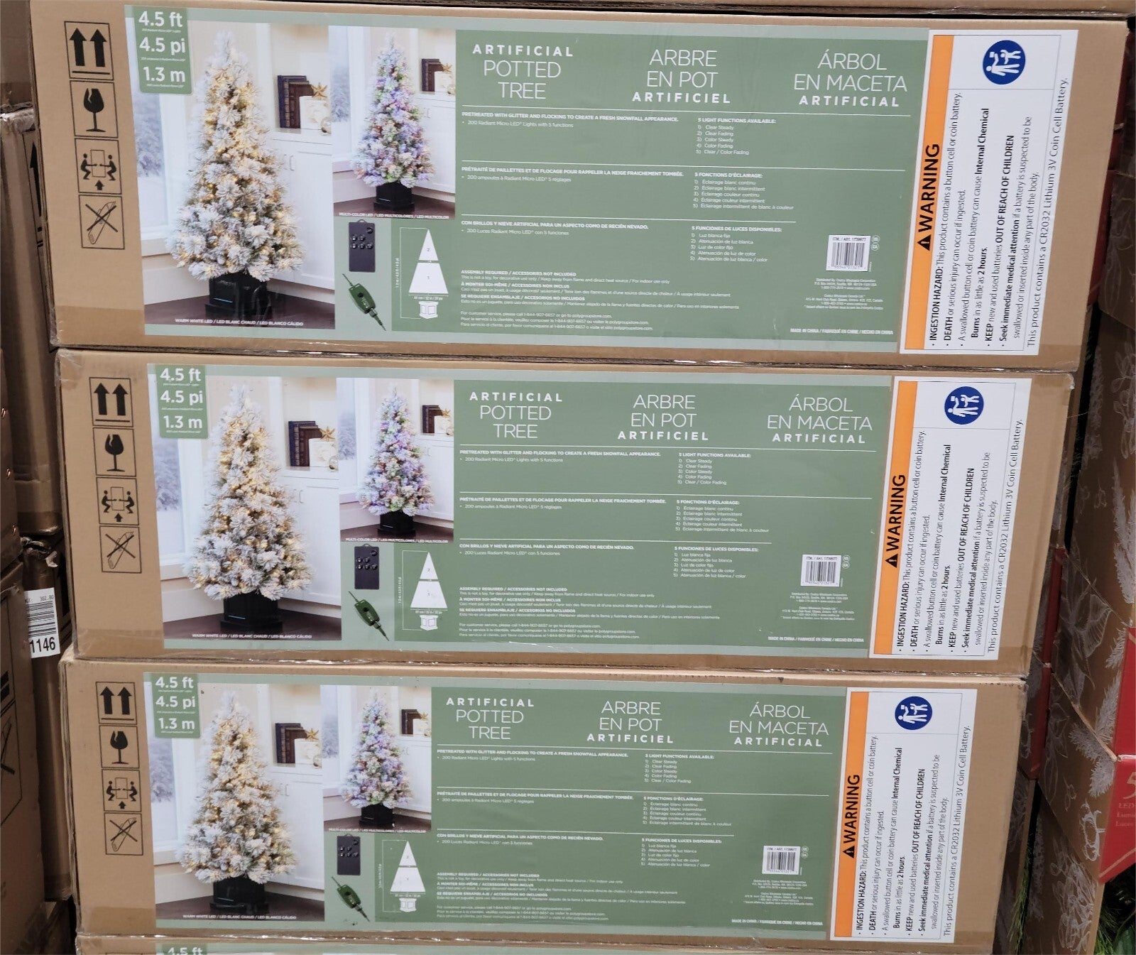 Make it a white Christmas with the 4.5ft Pre-lit Glitter Flocked artificial Christmas tree. Featuring lightly flocked branch tips with a cashmere glitter finish, this beautiful tree invites a storybook atmosphere. Its charm is increased with 200 Radiant Micro LED® lights that have 5 different light functions to choose from. The LED lights are easily managed with the included remote control. Your tree stands securely with the included decorative square pot. Enjoy the sparkling character of the 4.5ft Pre-lit Glitter Flocked artificial Christmas tree all season.