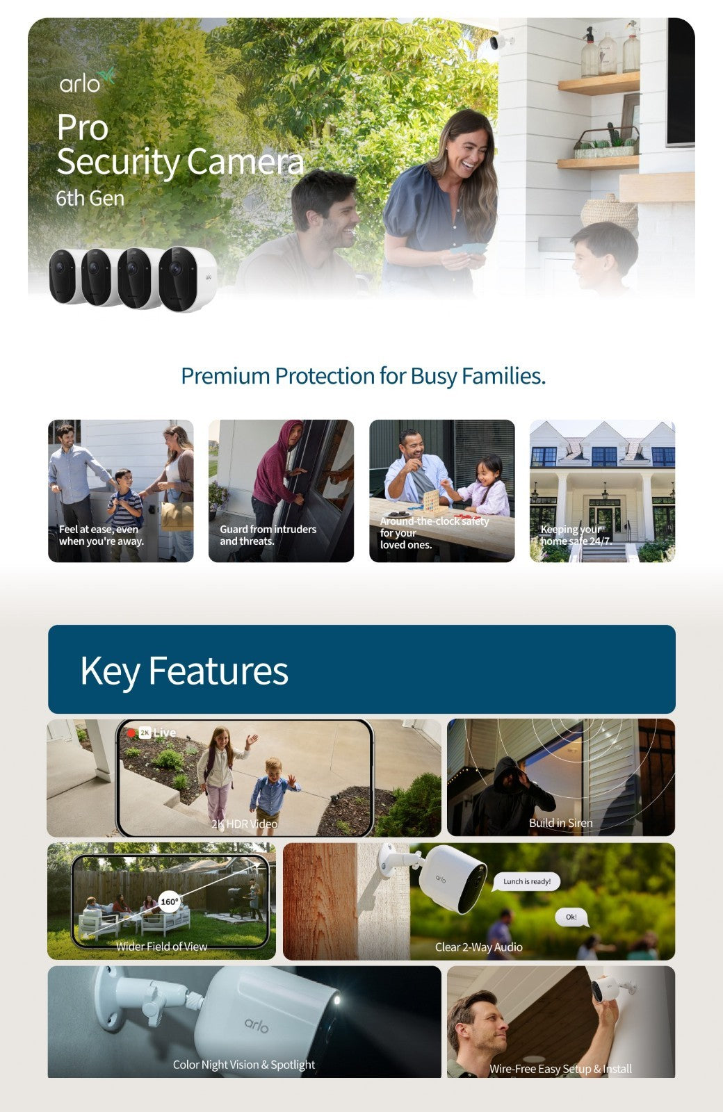 Arlo Pro 4-pack 2K Security Camera , Motion Detection & Alerts 6th Wireless Cam
