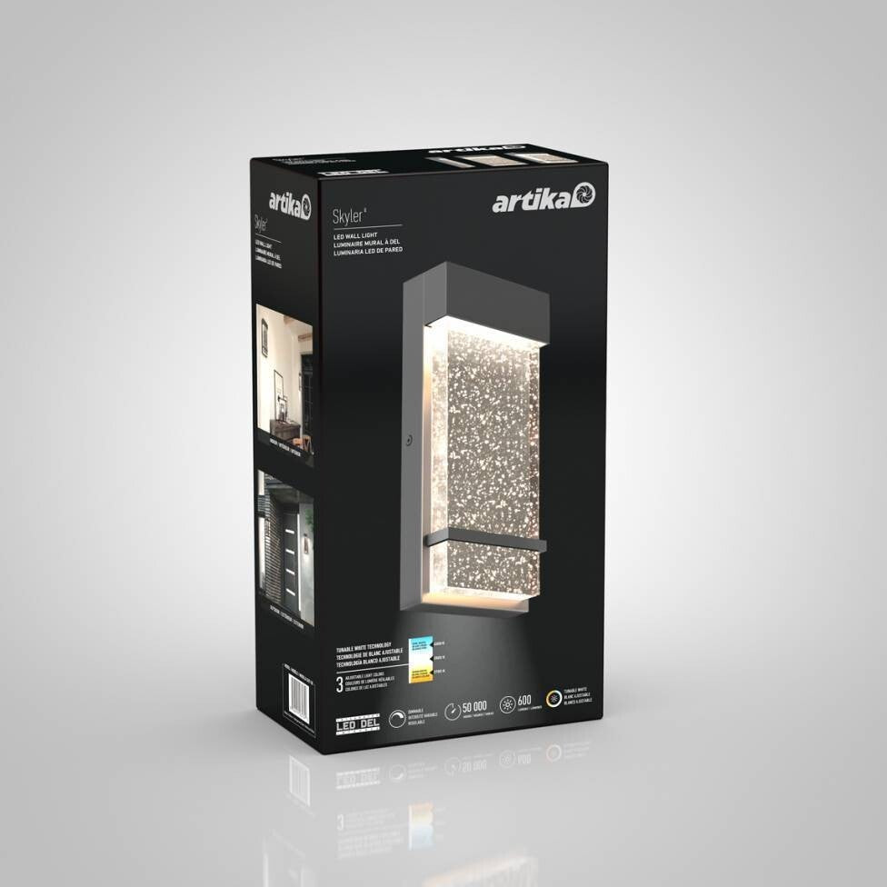 If you are looking for elegance and originality, look no further than Skyler. With its black finish and glass diffuser, this LED wall sconce shines like the stars! Installed either inside or outside the home, this luminaire invites you to adjust its 3 colour temperature settings from warm to white to cool.