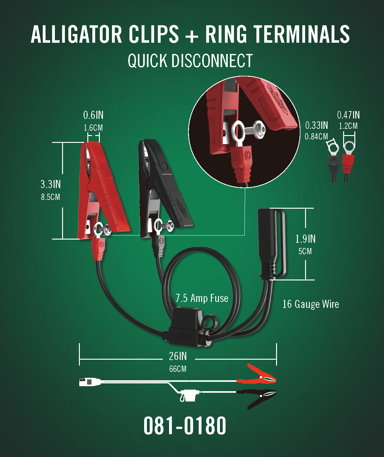- INCLUDES: 6V, 1.25 AMP battery charger, fused ring terminal and alligator clip accessory cables, 5-year warranty, and lifetime customer support