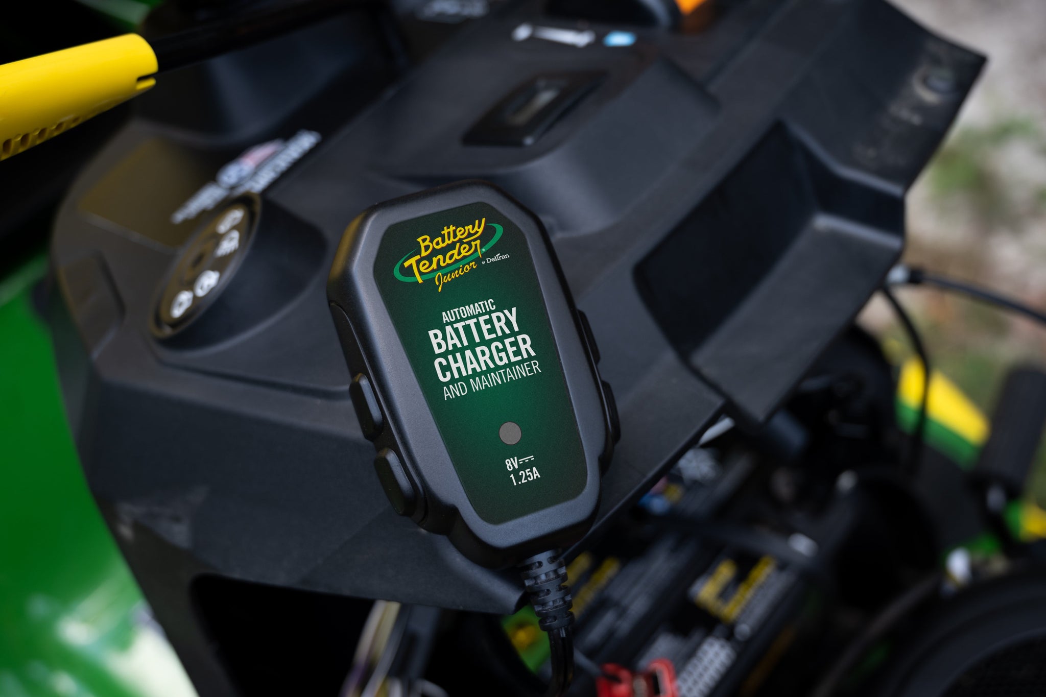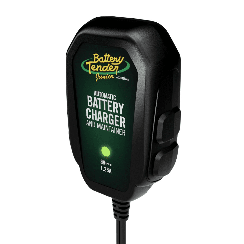 The Battery Tender Junior 8V 1.25A Charger & Maintainer is designed for lead-acid, flooded, sealed, AGM, and gel cell batteries. It features a 4-step charging process: Initialization, Bulk Charge, Absorption Mode, and Float Mode, making battery maintenance fully automatic. Once the battery is fully charged, it switches to a float voltage to maintain the charge. If the battery voltage drops, it automatically resumes full