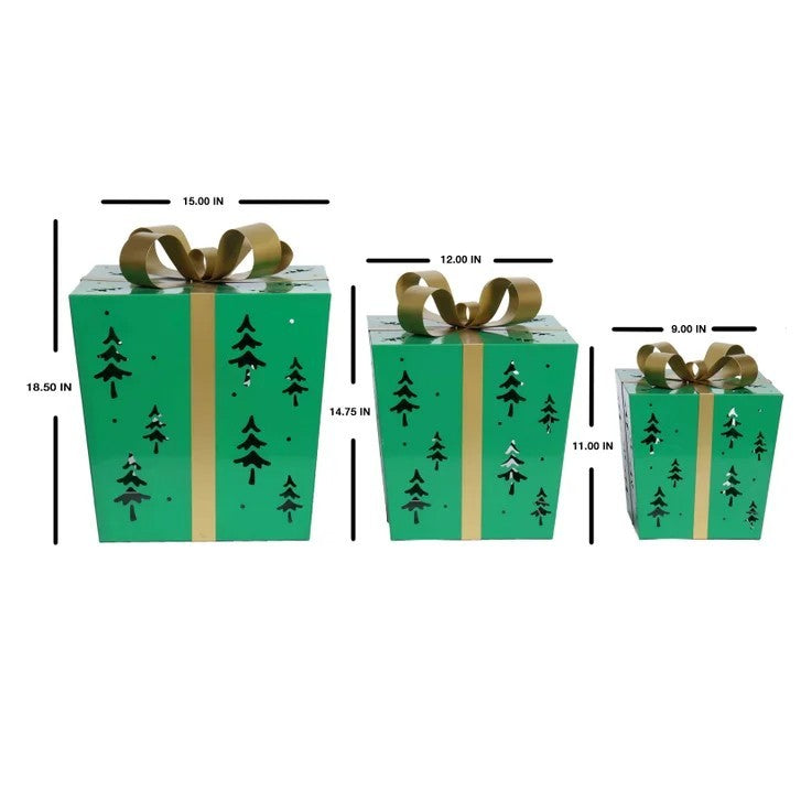Christmas Metal LED Gift Box Set of 3 – Lighted Tree Cutout Holiday Decorations