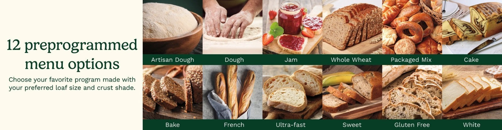 - 12 Pre-Programmed Menu Options and 3 Loaf Sizes