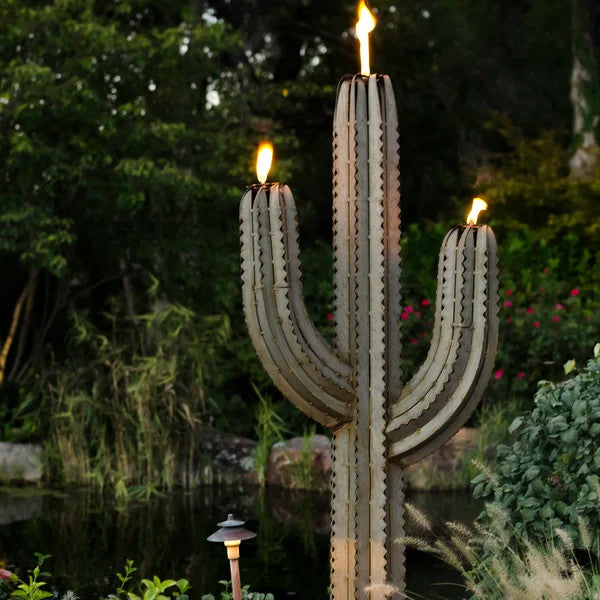 Desert Steel 5' Saguaro Garden Cactus Statue and Tiki Torch, 21”W x 60”H x 8”D