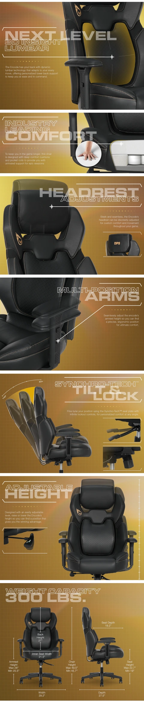DPS Encode 3D Insight Gaming Chair, 3D Insight Lumbar Technology Computer Chair