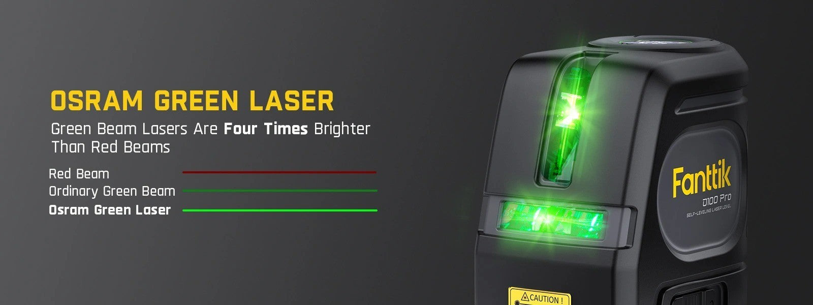 Bright Green Laser with ±3/32 in Accuracy at 30 ft. and up to 100 ft. Range