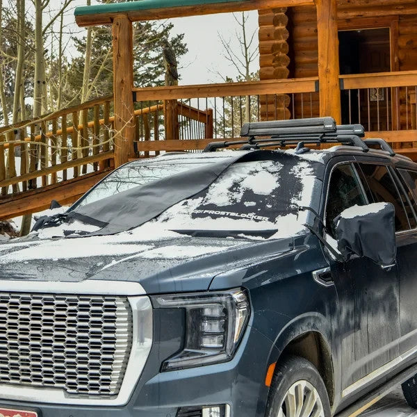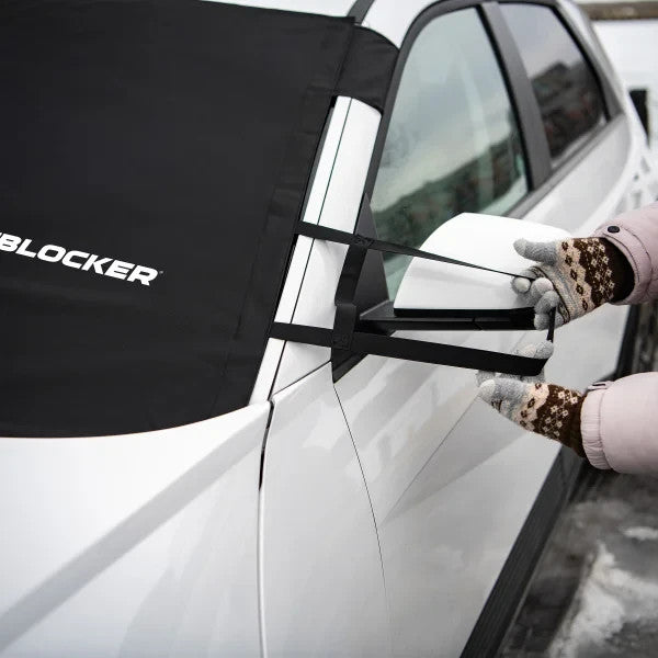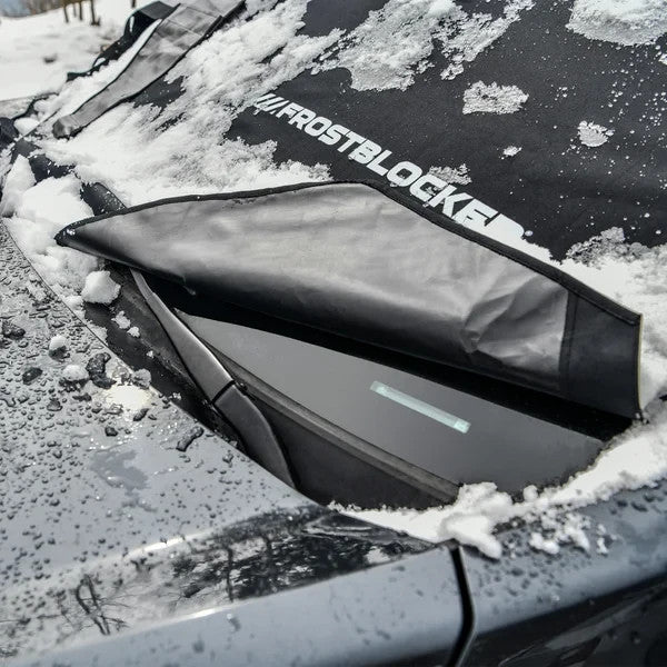 A protective winter windshield cover, FrostBlocker® is the ultimate ice scraper alternative. No more scraping, cold hands, or defrosting your windshield. Protects the essential viewing area of your windshield from frost, ice, and snow. Save time and fuel to get you on the road quickly!