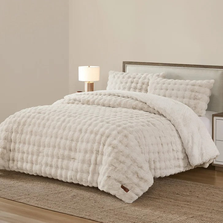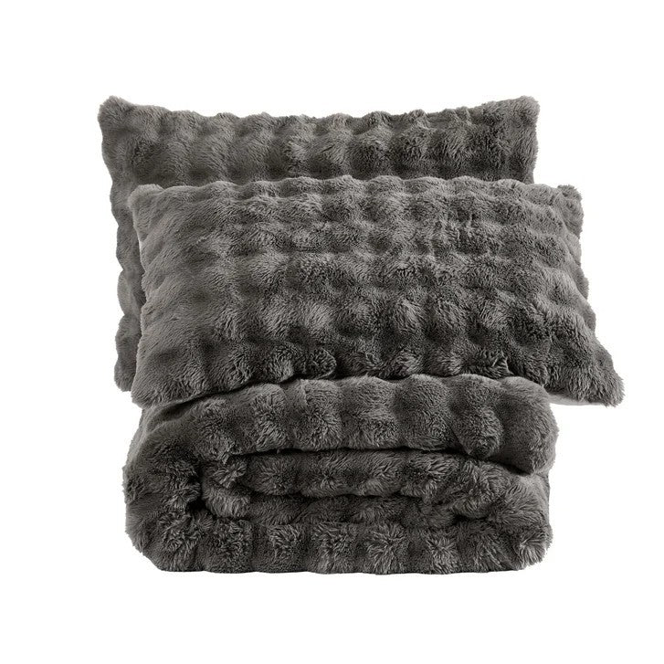 Frye 3-piece Faux Fur Comforter Set, Faux Rabbit Fur 1 Comforter, 2 Shams