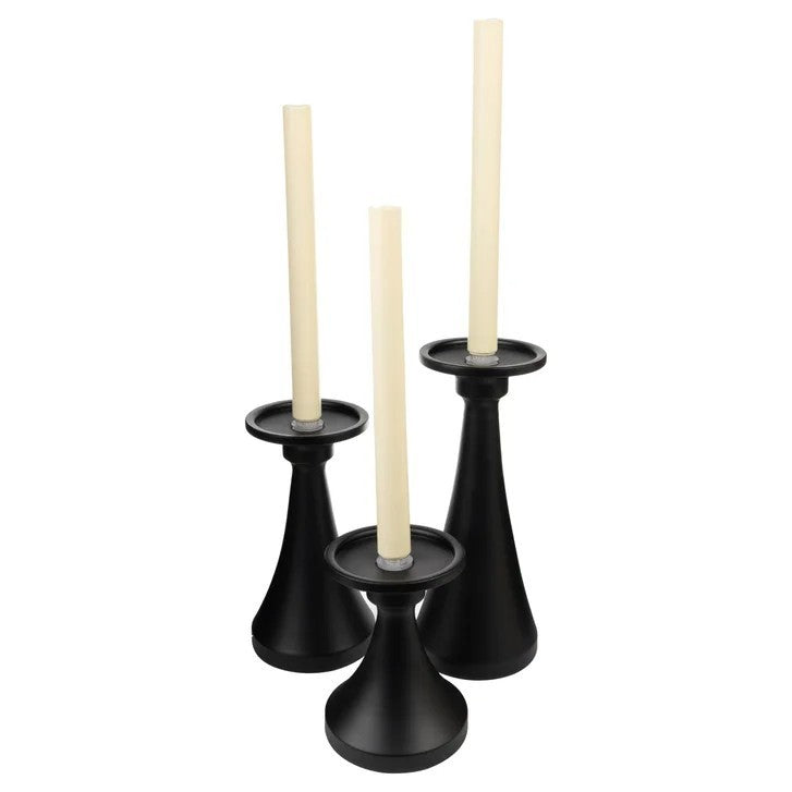 - Metal construction candle holders 5.43”, 7.72” and 9.88” H - Black