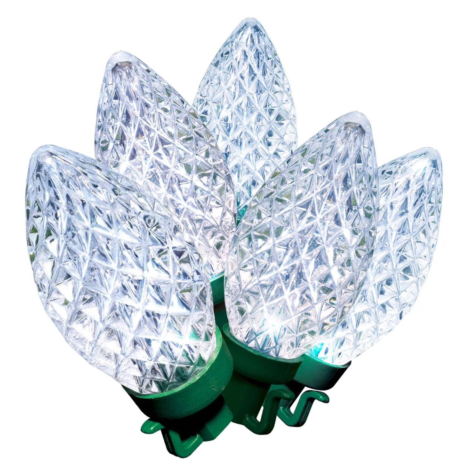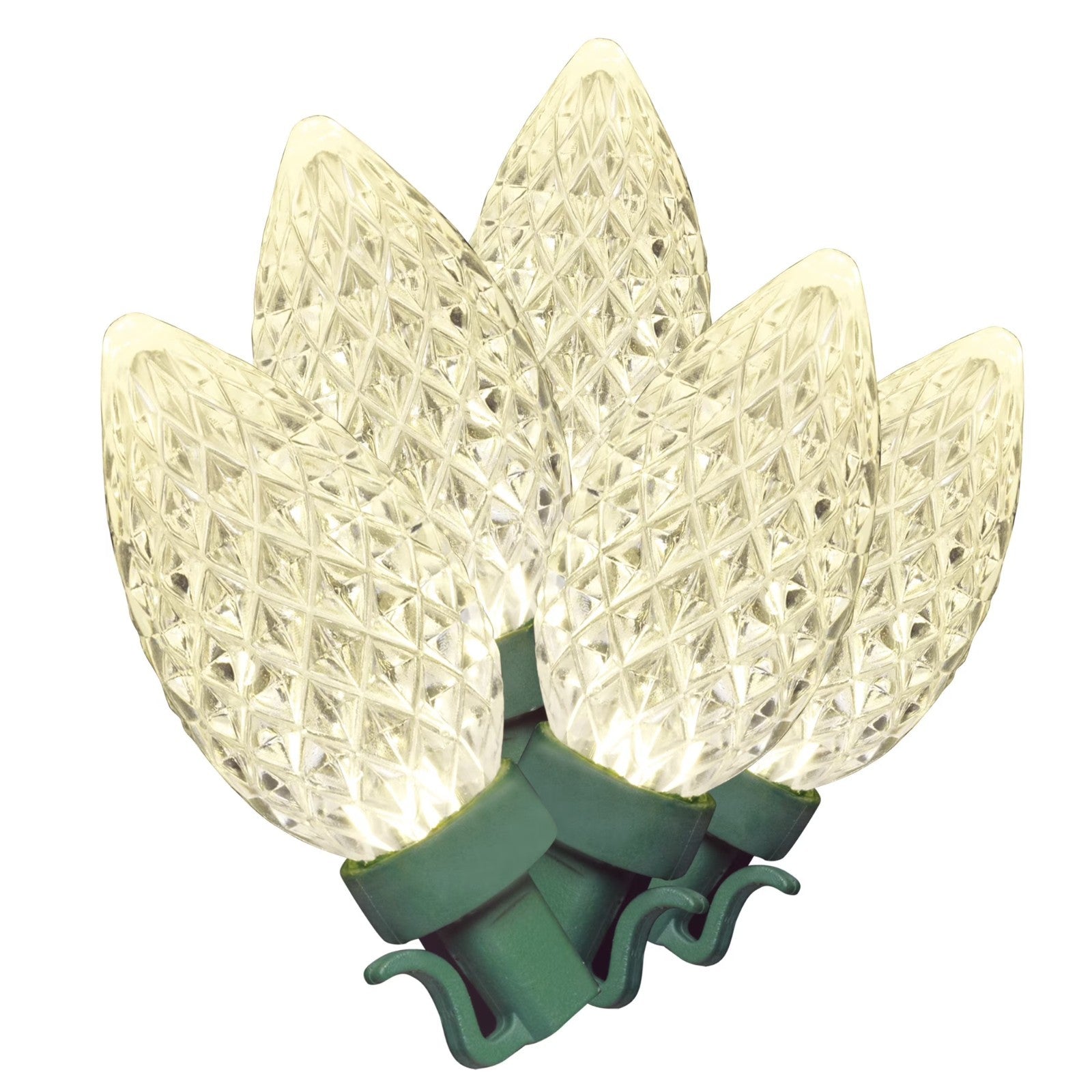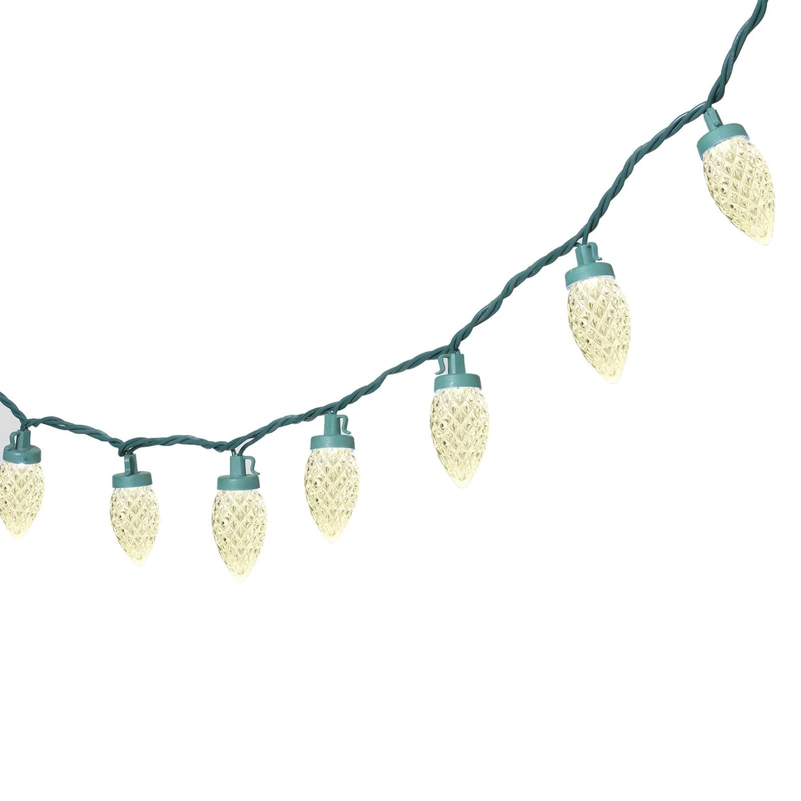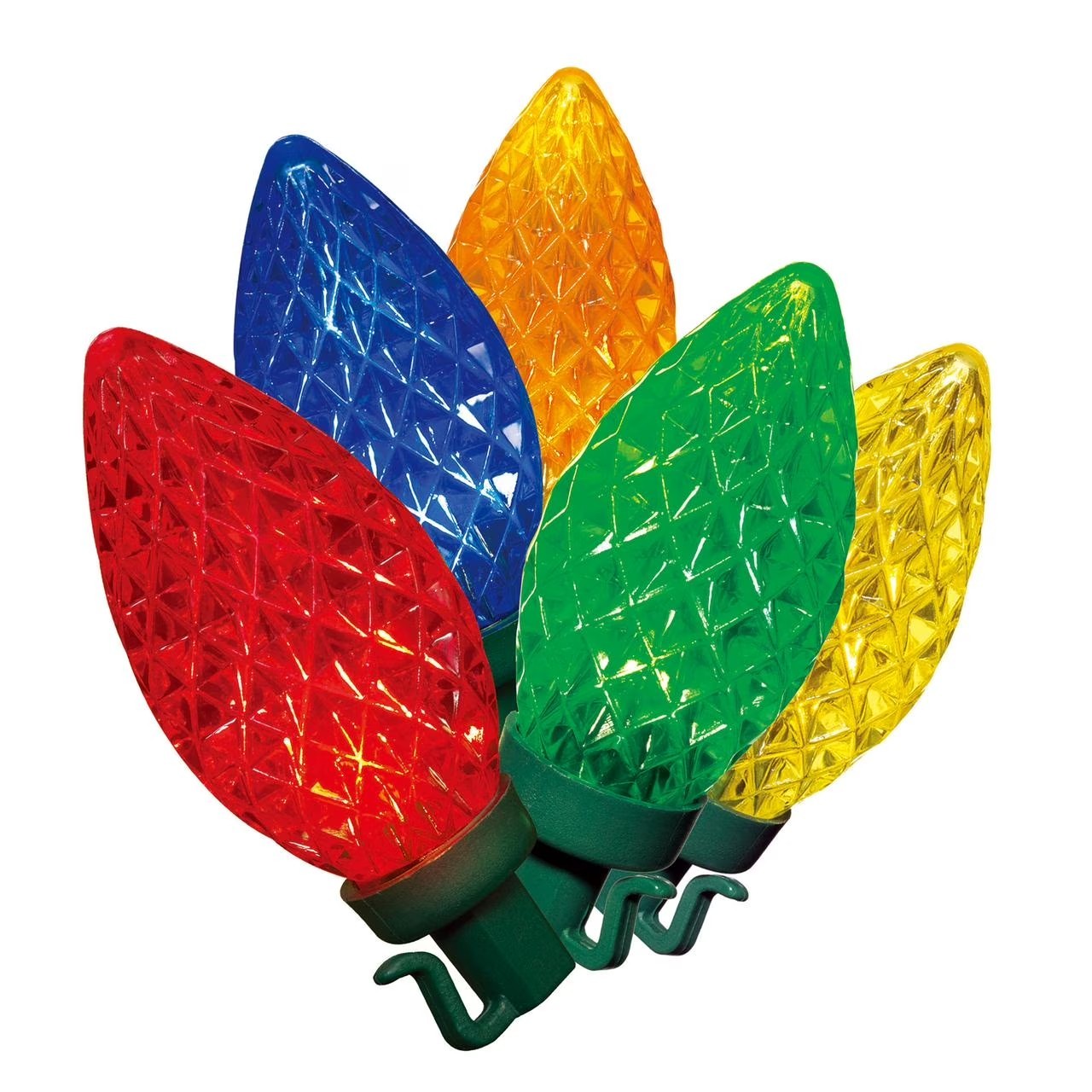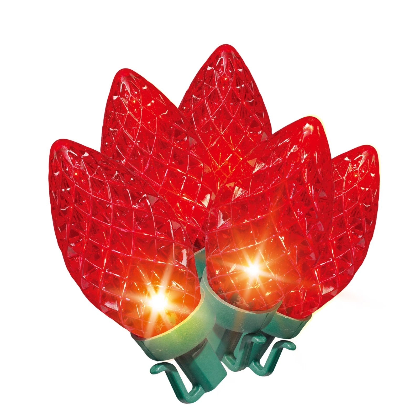 The Holiday Time 100-Count Diamond-Cut LED C9 Christmas Lights will bathe your home and holidays in brilliance. This light set features 100 diamond-cut bulbs for a gorgeous sparkling lighting effect across 58.5 feet inside and outdoors. These LED Christmas lights help save energy and remain cool to the touch even when lit. Connect up to 45 strings of this exact set of lights to create an incredible holiday display sure to delight your family, friends, neighbors, and holiday guests. The Holiday Time Diamond-Cut LED C9 Christmas Lights are crafted with a green wire in a tangle-free design to blend in perfectly with branches and other greenery. They come in 6 festive colors: Warm White, Cool White, Multicolor, Red, Blue, and Red/Warm White. The decorating possibilities are endless with the Holiday Time 100-Count Diamond-Cut LED C9 Christmas Lights.