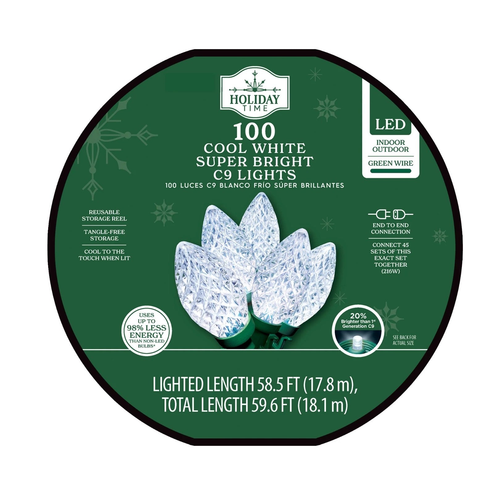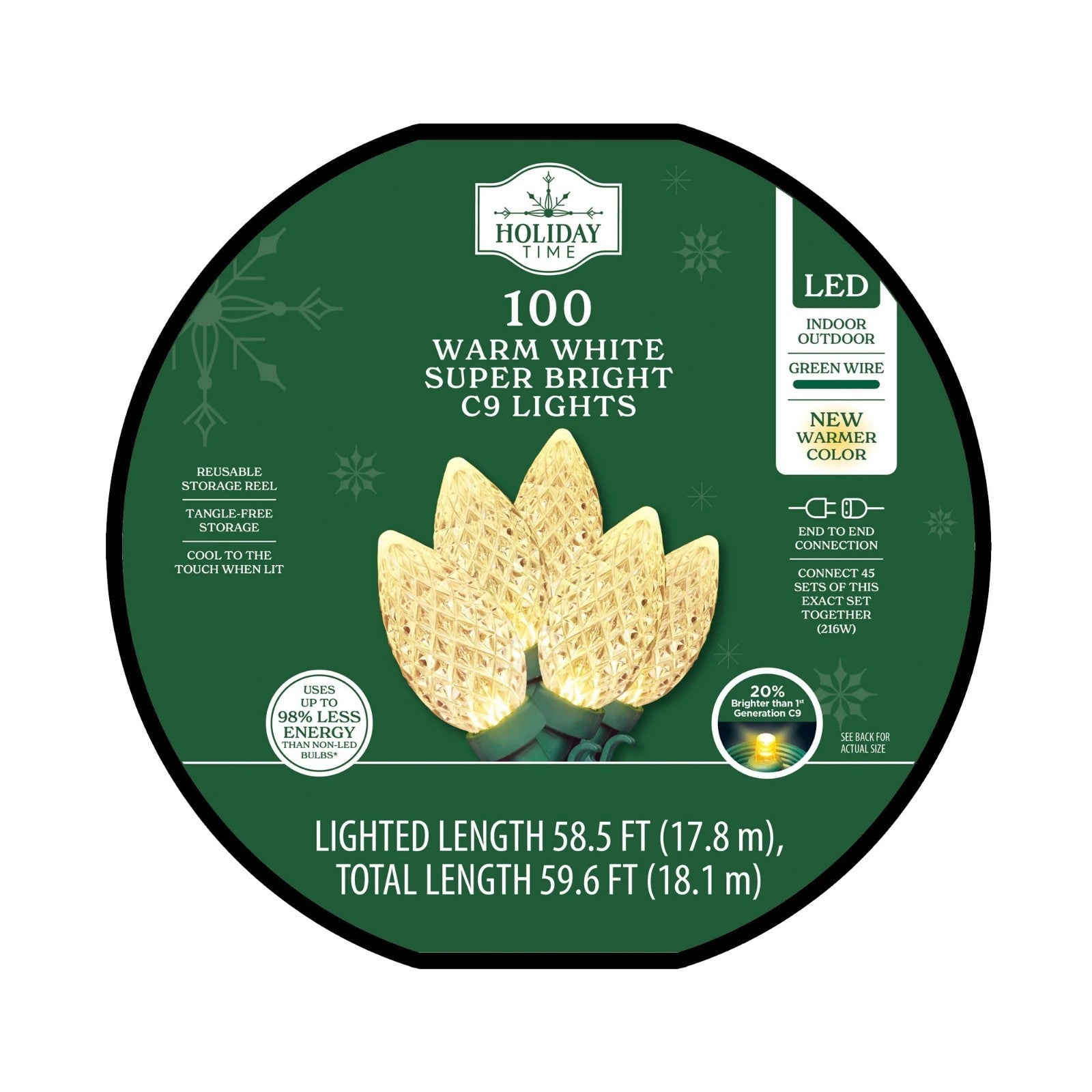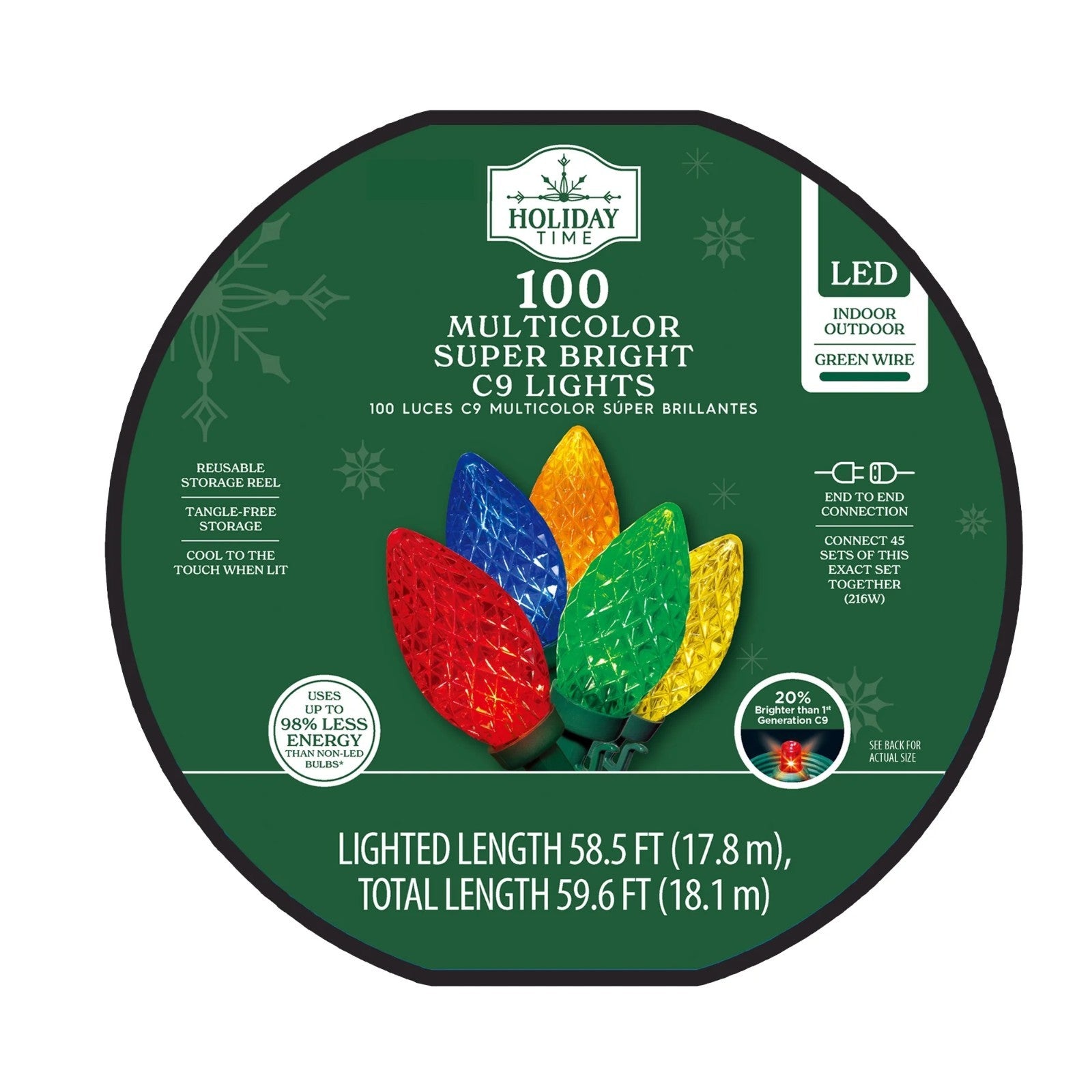 - Holiday Time Indoor/Outdoor 100-Count LED Diamond-Cut C9 Christmas Lights