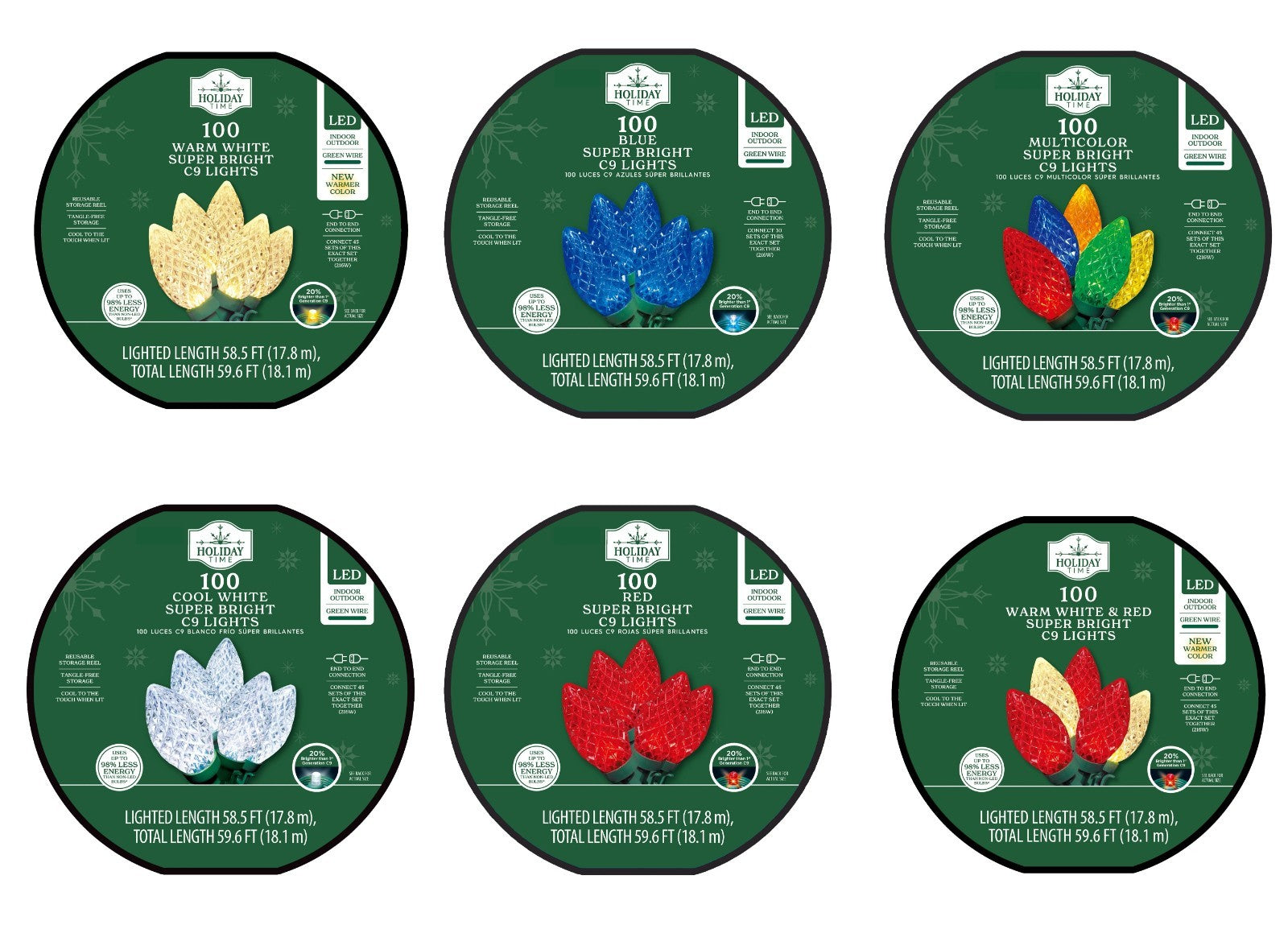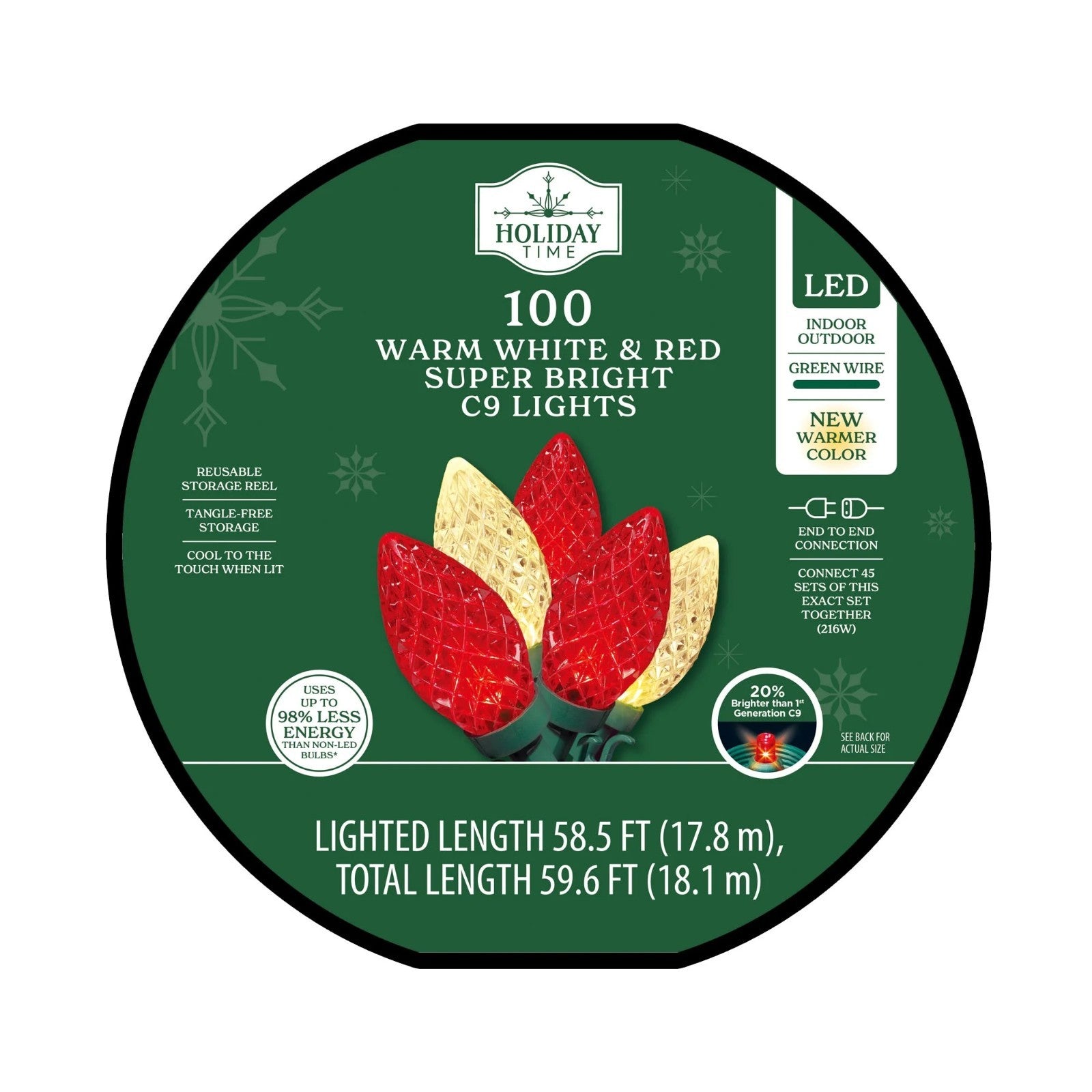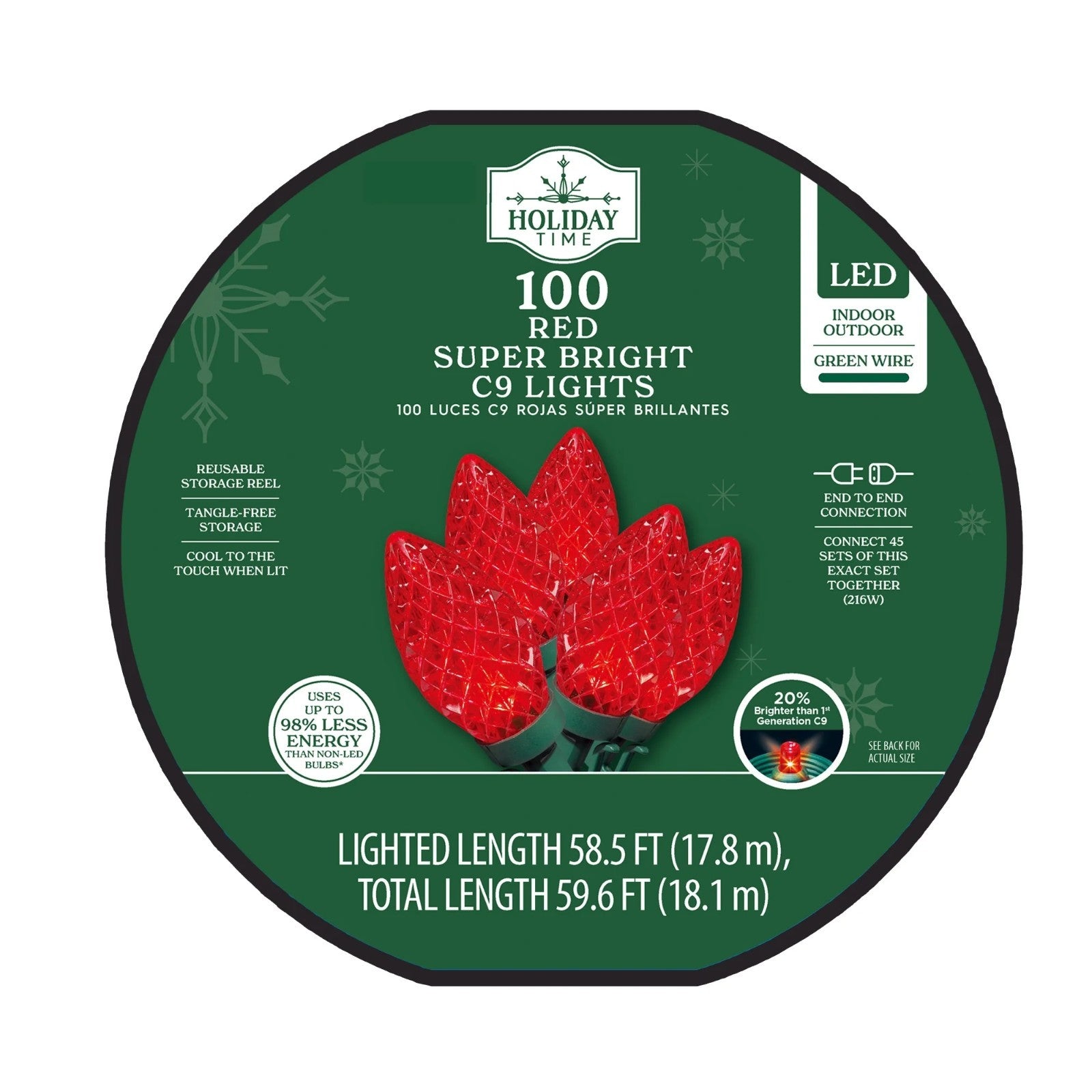 - Holiday Time Indoor/Outdoor 100-Count LED Diamond-Cut C9 Christmas Lights