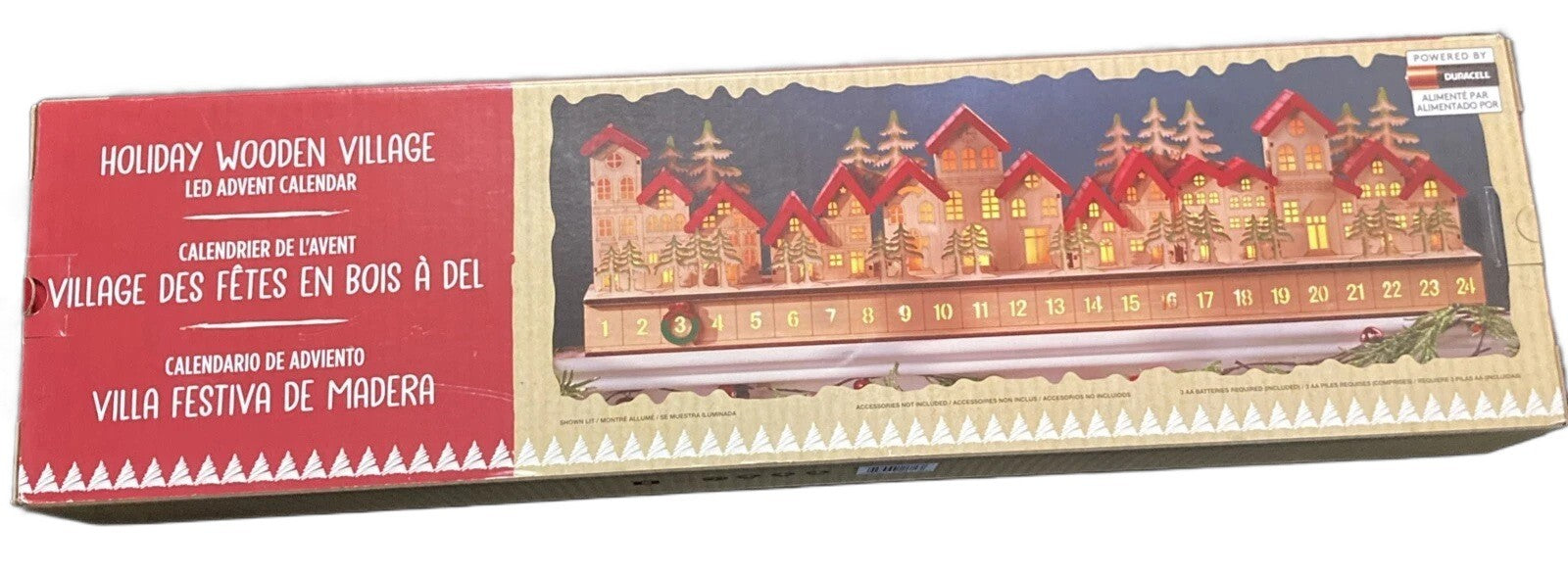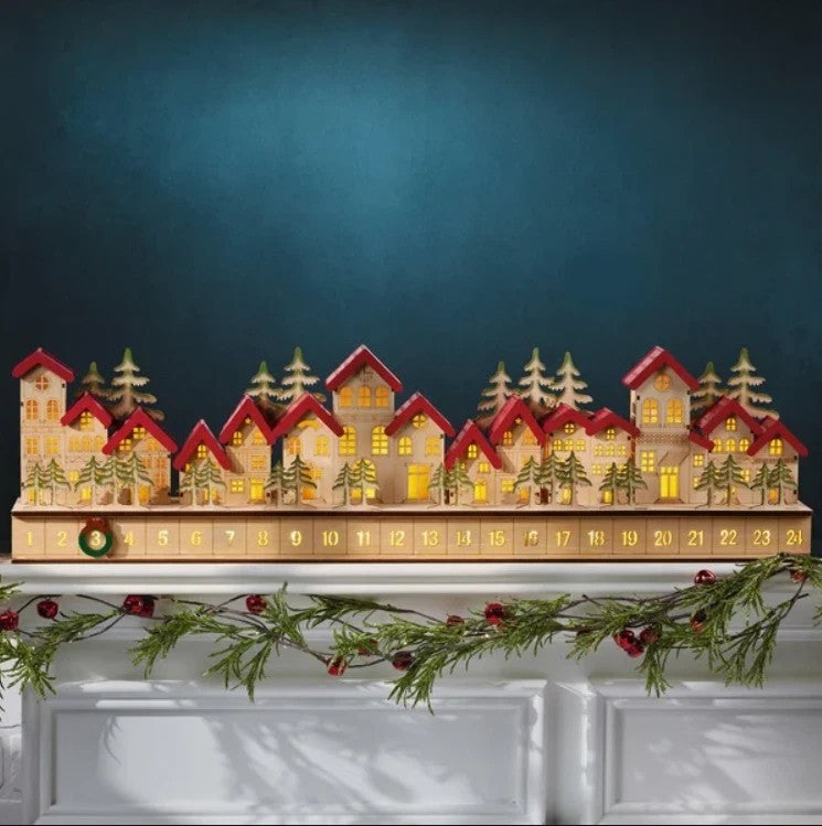 Holiday Wooden Village LED Advent Calendar, 30"x4"x8"