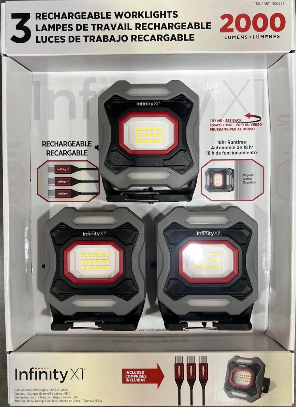 Infinity X1 2000 Lumen Rechargeable Worklights - 3 Pack
