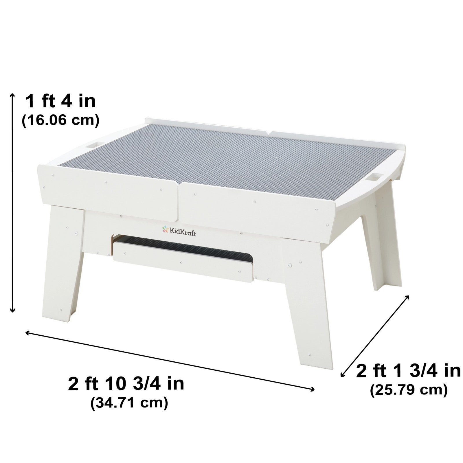 Designed for both play and practicality, the two tabletop sections easily slide apart using notched handles, giving kids separate play spaces to build side-by-side. When playtime is done, two hidden storage bins neatly store bricks and creations until next time. Close the tabletop for a tidy, furniture-like finish that fits perfectly in a playroom, bedroom, or family space.