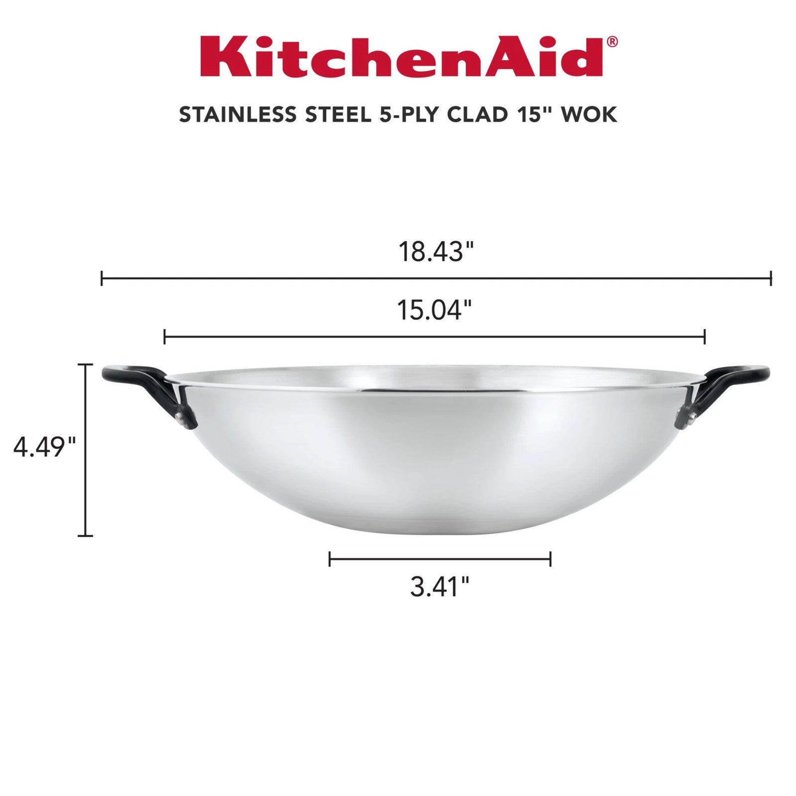 KitchenAid 15” 5-Ply Clad Stainless Steel Wok, Oven & Dishwasher Safe