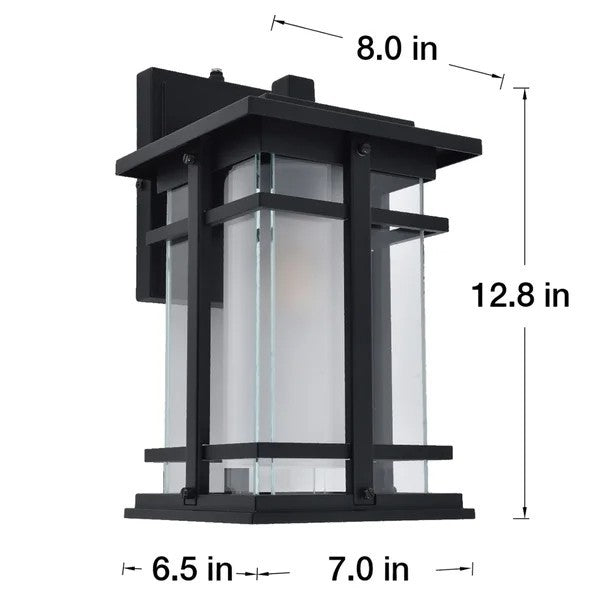 Lutec Craftsman Style Wall Lantern – Matte Black Aluminum Light with Glass Panel