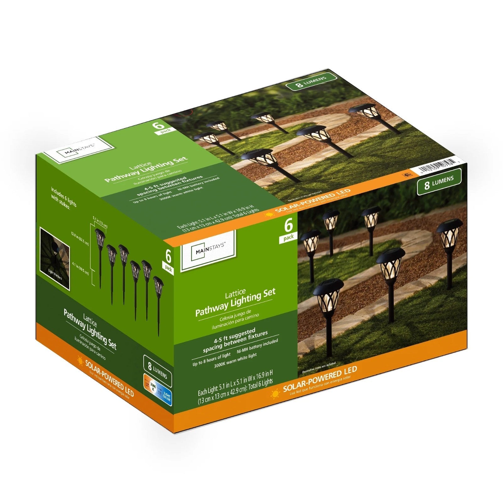 Mainstays Solar Powered Black Lattice LED Landscape Pathway Light with Glass Lens, 8 Lumens (6 Count)