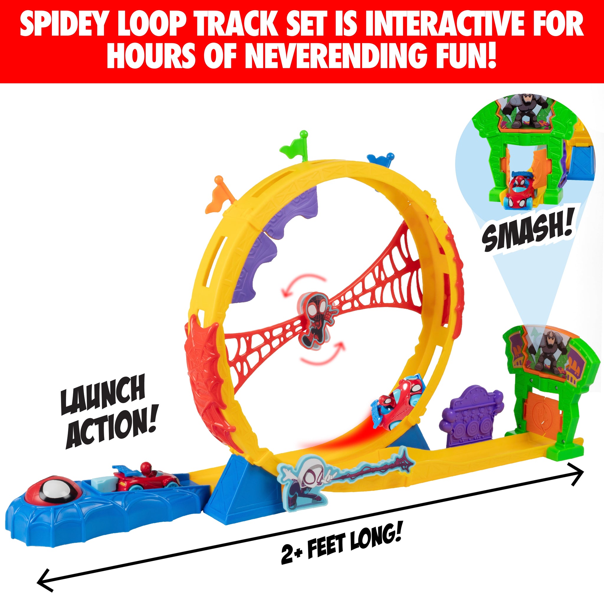 - SPIDEY TRACK SET: Ride up and around the MARVEL Amazing Metals Super Loop Track Set