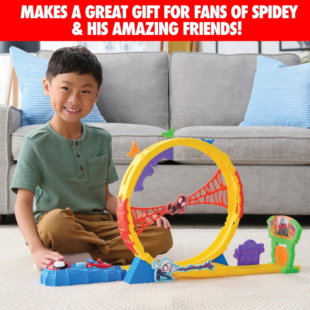 Marvel Spidey and His Amazing Friends Amazing Metals Super Loop Track with Spider Man Vehicle Set - 28-Inch Race Track with Launcher, 360 Degree Loop - Great Gift for Kids, Boys & Girls!