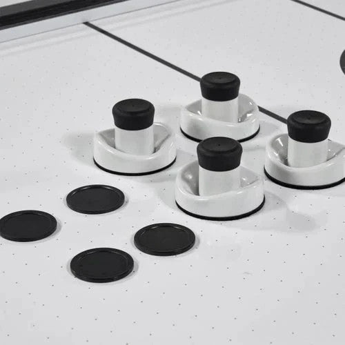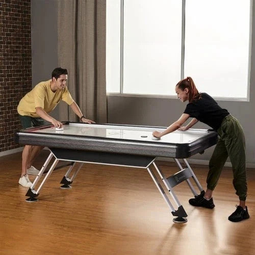 The MD Sports 89-inch Steel Leg Air Powered Hockey Table will impress everyone in your home or office. The scratch-resistant UV-coated playfield with a high-speed motor fan provides a fast and exciting game. This table has in-laid LED electronic scorers on both ends of the table and arcade sound effects to bring the game to life. One of the best parts of this air hockey table is the robust steel leg construction with steel cross supports and the oversized 6-inch leg levelers. You can start playing this impressive game table immediately, as all the accessories are included. Get ready to make great memories with the MD Sports 89-inch Steel Leg Air Powered Hockey Table.
