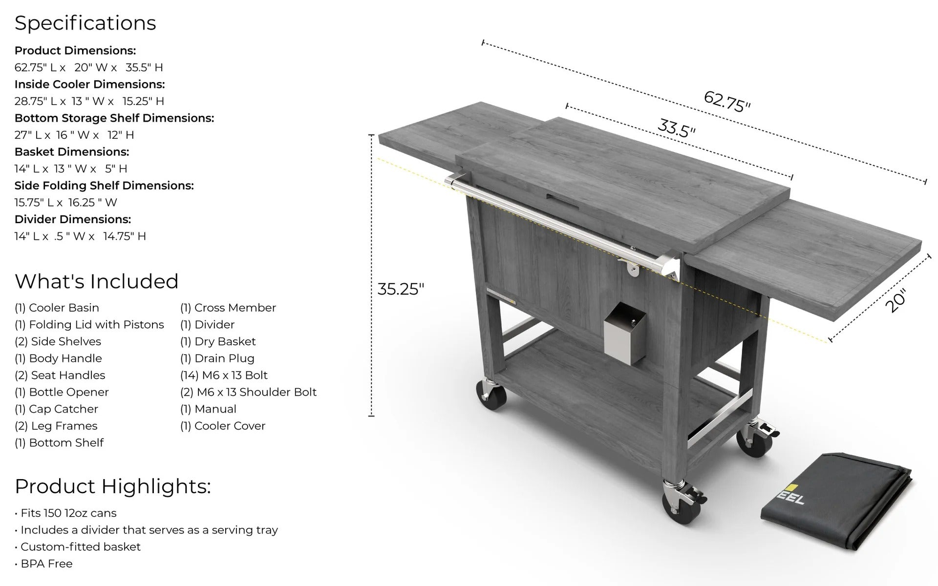 | Dimensions: W x D x H | 62.75 in. x 20 in. x 35.37 in. |