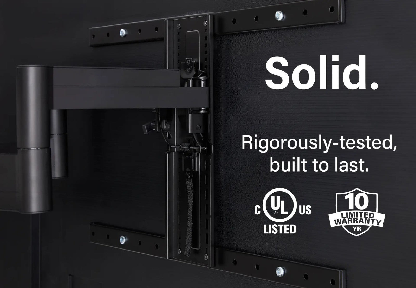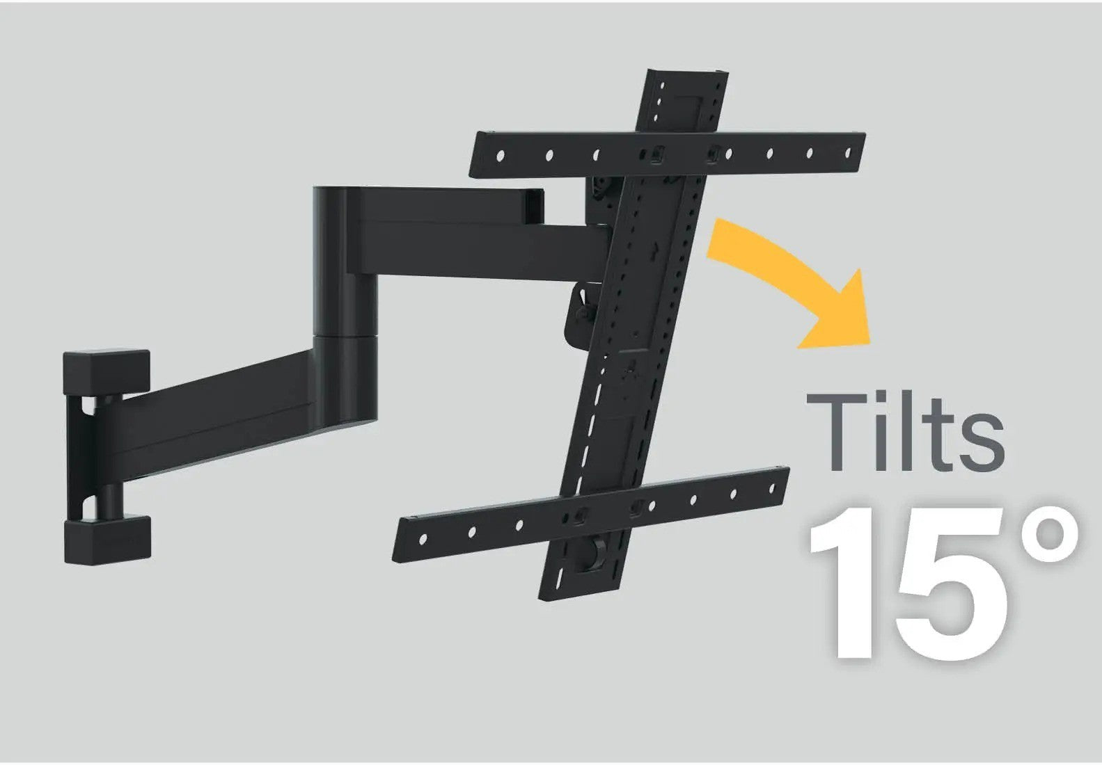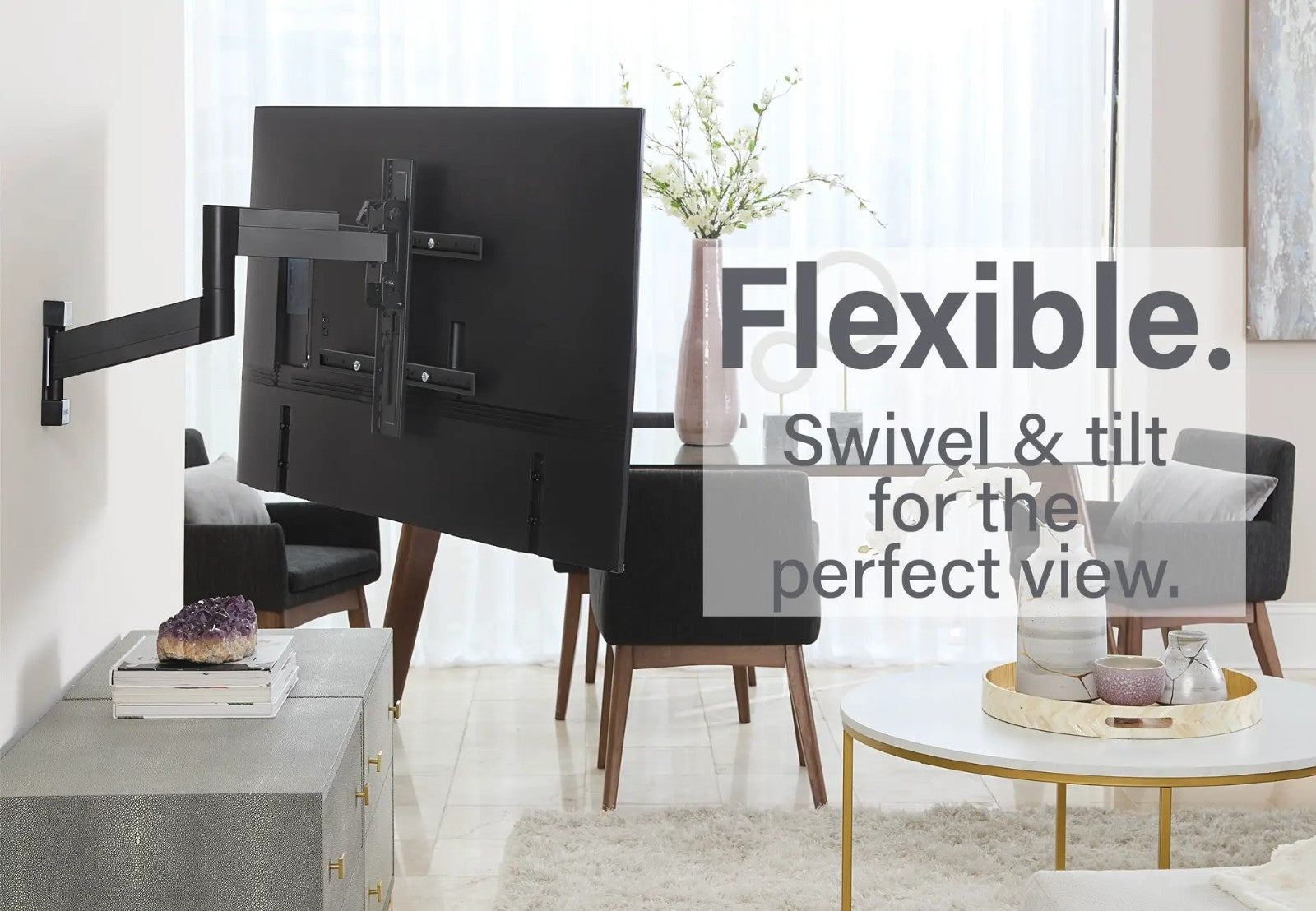 Dual articulating arms let you extend your TV up to 21” from the wall, so you can find that perfect viewing angle.