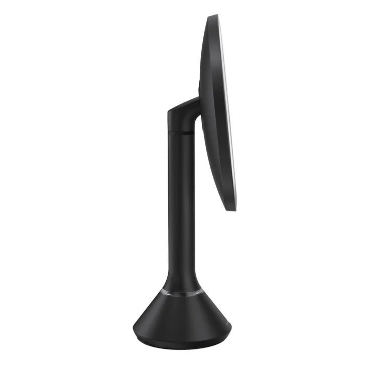 Lights up automatically as your face approaches. Tru-lux light system simulates natural sunlight, allowing you to see full color variation, so you'll know when your makeup is color-correct and flawless. Touch-control brightness bar gives you fast, intuitive control over a continuous range of brightness. It also has a candlelight setting, so you can check your look in low light before you go. Long-lasting surgical-grade LEDs won't burn out or diminish even after years of use. Cordless and rechargeable — one charge lasts up to 5 weeks. 5x magnification is ideal for providing exceptional detail while still allowing you to see your entire face at once.Includes: