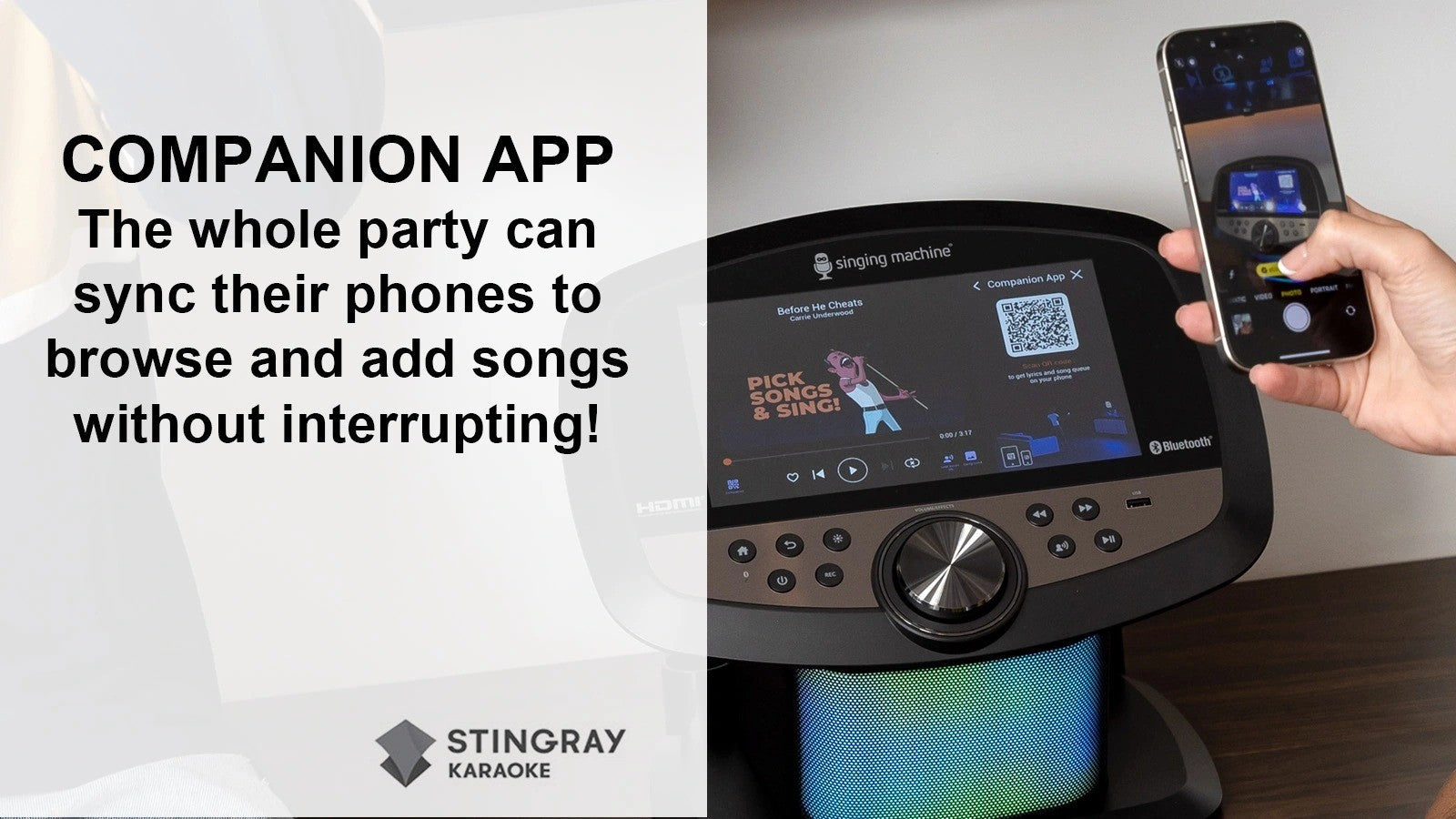 - AI vocal removal works across Bluetooth, USB, karaoke and music streaming apps