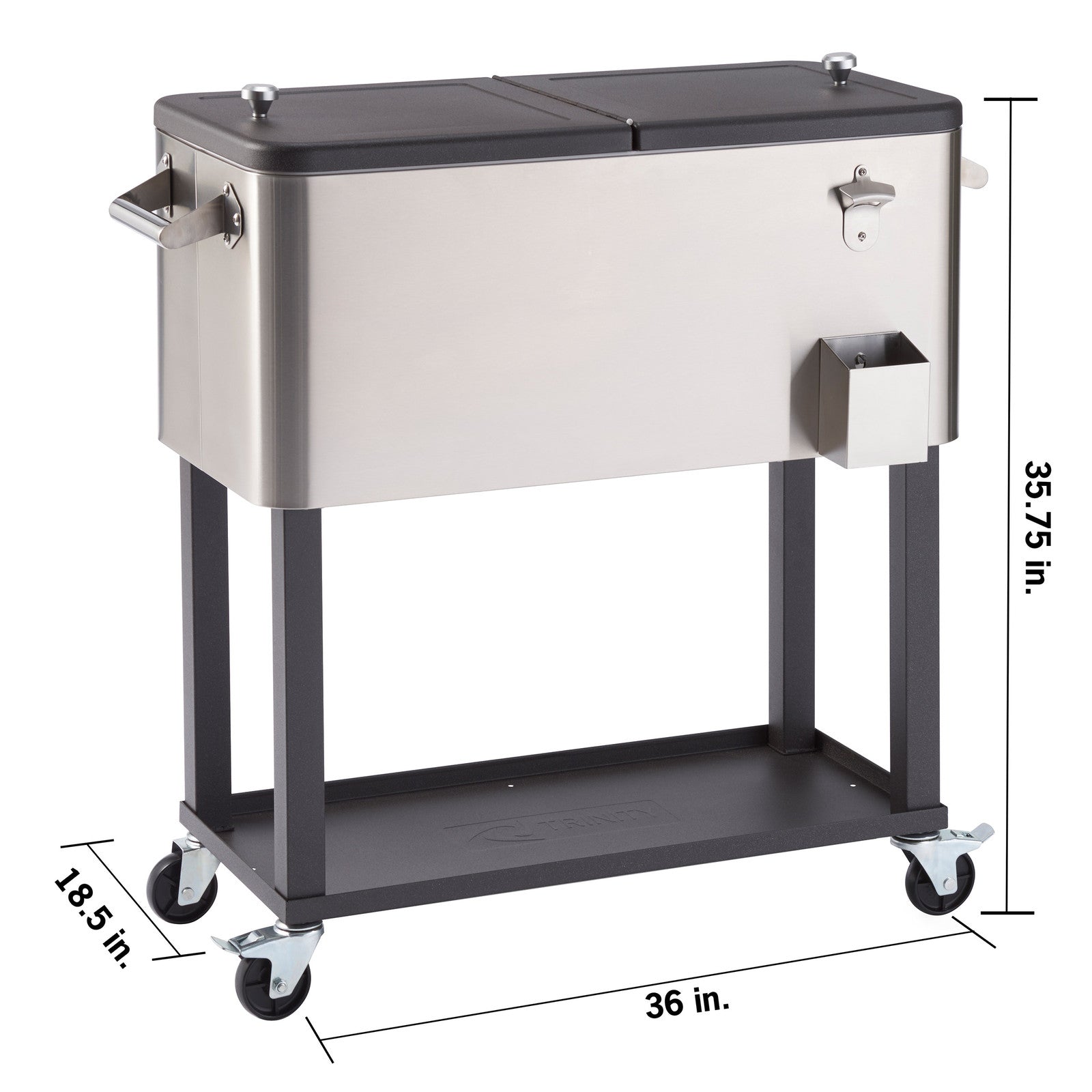 Trinity Stainless Steel Ice Cart Cooler with Swiveling Locking Wheels