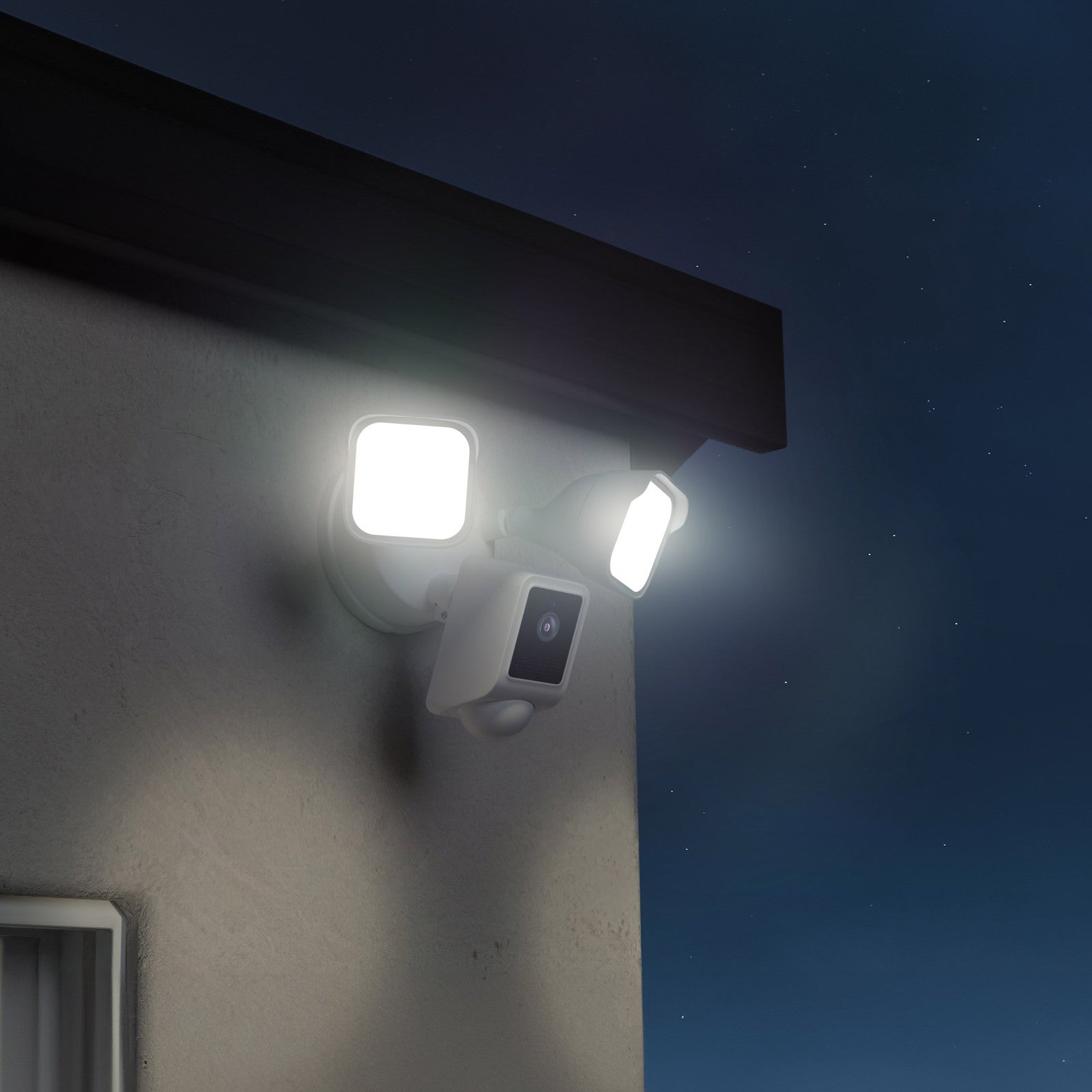 The Wyze Floodlight v2 delivers 3000 lumens of motion-activated light with built-in 2K video and color night vision. Three Wyze Cam v4s offer 2.5K QHD clarity, smart detection, and weather-resistant monitoring indoors or outdoors. The Wyze Duo Doorbell features dual cameras for complete head-to-toe and package-view coverage, two-way talk, and smart alerts.